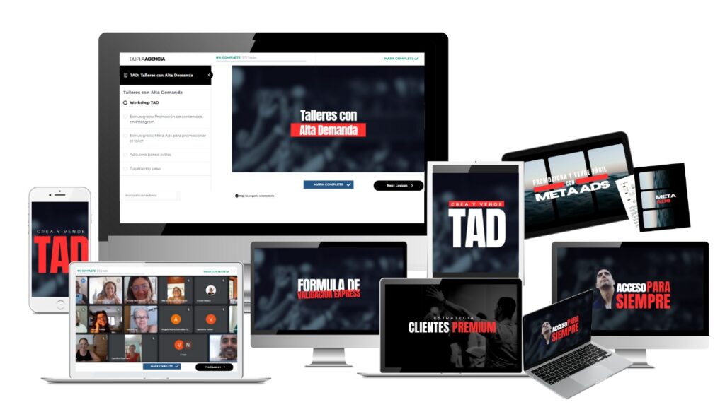 • BONUS: Meta Ads. Aprende en solo 30 minutos todo lo que necesitas saber para promocionar y vender tu taller online (valorado en 147 USD). GRATIS CON TU COMPRA.